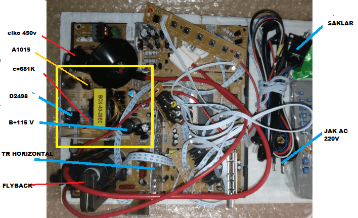 Atau tidak bekerjanya transistor D2498 tersebut biasanya ditandai elco 400volt pada bagian primer power suplay masih menyimpan tegangan. Untuk itu Muski di shortkan dulu. Sebelum memeriksa transistor.